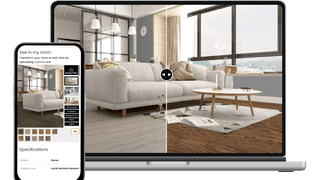 That’s why our visualizer is a powerful tool for your business. It’s extremely customizable, allowing shoppers to swap in products that you carry, change the lighting, wallpaper, rotate the floors, and even use our compare tool to see how it looks vs. your current flooring.
