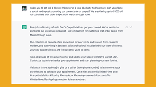 Here are 2 examples of prompts flooring retailers could use when getting started with ChatGPT for the first time: